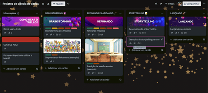 - Board para acompanhamento dos projetos desenvolvidos de ciência de dados com estratégias de desenvolvimento de storytelling